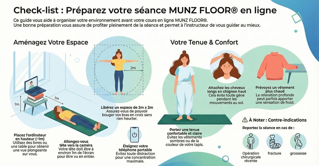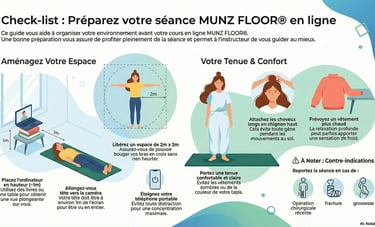 Afin que vous viviez votre séance dans les meilleures conditions possibles et que je puisse vous guider au mieux, je vous propose d’organiser votre espace avant le cours.