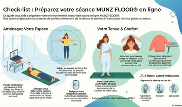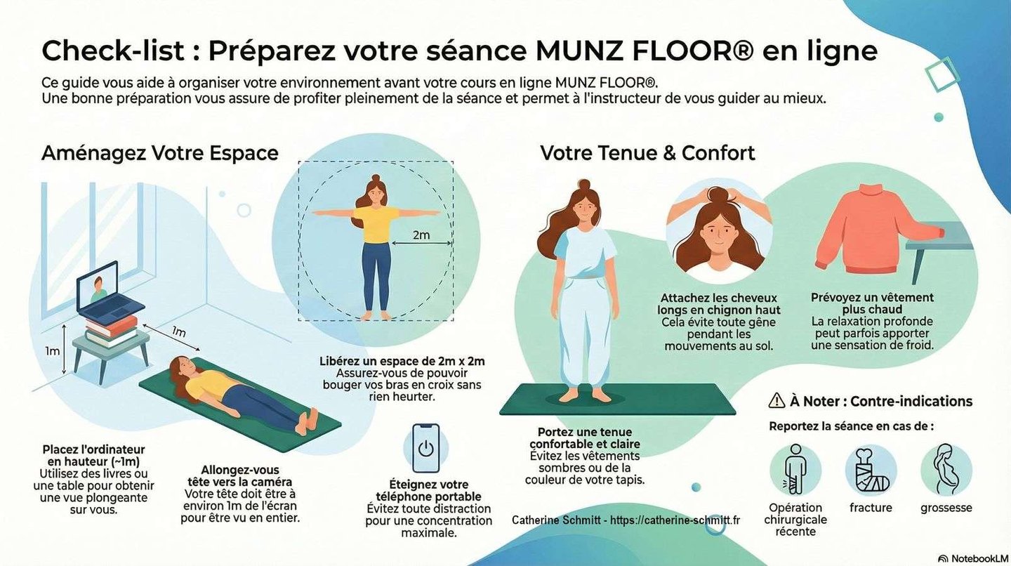 Afin que vous viviez votre séance dans les meilleures conditions possibles et que je puisse vous guider au mieux, je vous propose d’organiser votre espace avant le cours.